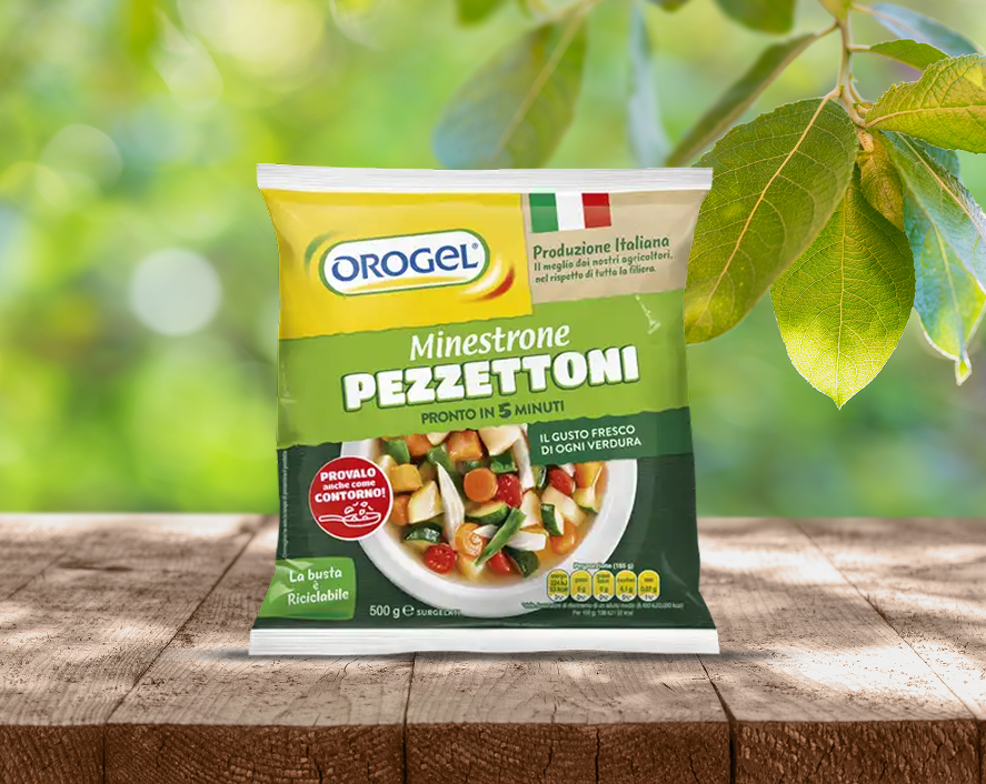 Il Minestrone Pezzettoni Orogel, eletto Prodotto dell’Anno 2025, è preparato con verdure selezionate e surgelate freschissime.